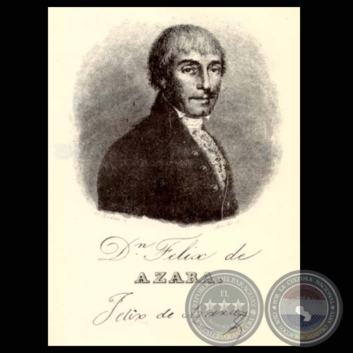 FÉLIX DE AZAR : Español, nació en Barbuñales en 1748. Con estudios universitarios de legislación y filosofía, ingresó en las FF. AA. Llegó al grado de Tte. Coronel de Ingenieros, y luego se incorporó a la marina con jerarquía de Capitán de Fragata. En 1780 fue designado miembro, de la Tercena Comisión encargada de determinar y fijar los hitos limítrofes e/ España y Portugal en el Río de la Plata, de acuerdo con los términos del Tratado de San Idelfonso. Ya en la Provincia, recorrió y estudió su territorio. Los resultados de sus observaciones fueron los siguientes libros: