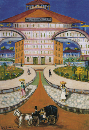 Herminia Soler de Benítez, propietaria de este óleo e hija del pintor, recuerda que su padre había quedado impresionado por un gran hotel levantado en las inmediaciones de Encarnación. Devoto como se sabe de las ideas de progreso, en cuanto no estuvieren ellas desvinculadas de los valores que profesa con tesón, el artista aplaude los dones de una modernidad abierta al provecho del pueblo.