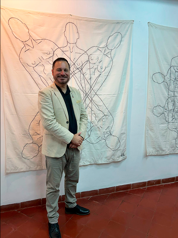 Enrique Espínola nos presenta en KUIMBAE/KUIMBAE una exploración textil donde el bordado se convierte en un lenguaje de memoria y transformación. Cada hilo es un trazo que construye la figura, no solo como representación, sino como una presencia que se despliega en el tiempo.