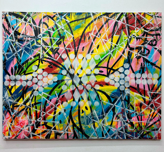 Intersticios... espacios ocultos que resisten la definición, donde la mirada se detiene y encuentra un latido nuevo. La pintura vibra, no como un muro, sino como una ventana entre mundos posibles.