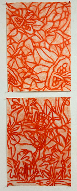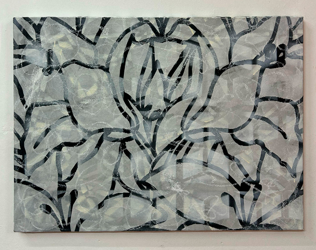 Sobre este suelo, las flores emergen como fragmentos de luz. No son meras formas, sino gestos de resistencia, cicatrices que florecen en medio de lo áspero, en el pulso de la tierra viva. La línea se deshace y reconstruye, como un pensamiento que atraviesa la piel del paisaje. Las formas orgánicas parecen danzar en un espacio sin gravedad, flotando entre lo tangible y lo etéreo. ¿Son fragmentos de un recuerdo? ¿Vestigios de un sueño? La obra invita a perderse en su maraña de trazos, a descubrir en cada curva un nuevo significado.