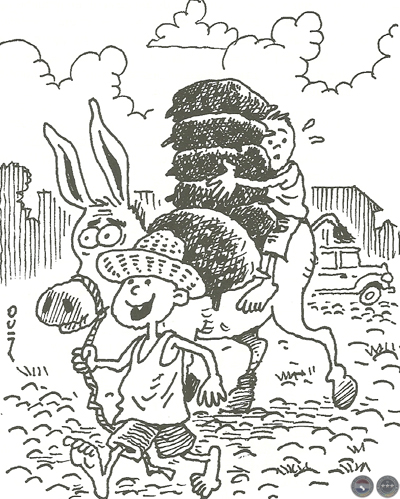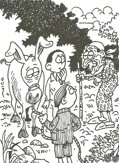 Un domingo tempranito, ambos, soga en mano, nos pusimos en camino por la arenosa e interminable calle Salinares, como nos había aconsejado el peluquero. En una larga hora, o serían dos, llegamos a la falda del cerro donde, tras impaciente búsqueda sorprendimos a un único burrito flacón y fláccido que enlazamos sin dificultades. Era manso, diríase que hasta sumiso. Lo atamos a un tronco y salimos en procura del otro que no apareció por lado alguno. Y ya estábamos resignados a llevarnos la única presa, tan distinta de los que imaginábamos libres y monteses como los del Libro de Job o el veloz y sabio tordillo, que Eddie Polo ensartara en su lazo en la serie que domingo a domingo proyectaba el cine de los Blasco. Lo llevábamos, repetimos, cuando apareció una anciana a aconsejarnos que lo dejáramos, que era su rymbá-cué, desahuciado por viejo, como el Platero del poeta andaluz, luego de muchos años de servirle lealmente.
