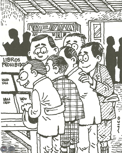 Para los jovencitos con curiosidades menos formales, Puigbonet disponía de unos anaqueles discretamente reservados con lo que, más que erótica, era literatura prohibida, como las novelas de Guido Da Verona, Felipe Trigo, Pittigrilli y Joaquín Belda, que de vivir aún se ruborizarían con la lectura de los best-sellers de Mailler, Durrell y Miller. De Trigo, que se suicidara muchos años atrás, conservábamos la curiosidad por "La sed de amar", de Belda, las sátiras históricas como "Alcibíades Club" y "La suegra de Tarquino", de Pittigrilli "Cocaína", "Dolicocéfala rubia" y "El experimento de Pott, y de Da Verona los numerosos novelones que nos envolvían en la encantadora atmósfera burguesa de la Italia elegante.