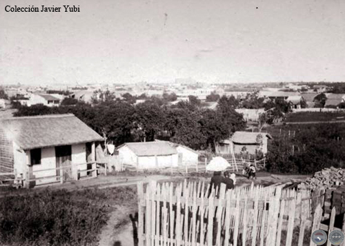 donde se aprecian casas bajas, calles rudimentarias y cercos de madera (1904).