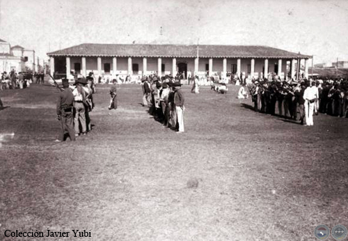Ejercicio de reclutas. Revolucionarios de 1904 frente a la Casa de los Gobernadores.