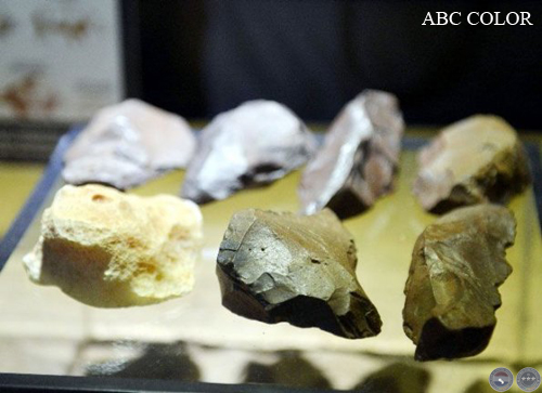 Material lítico. Una vitrina exhibe los elementos de piedras