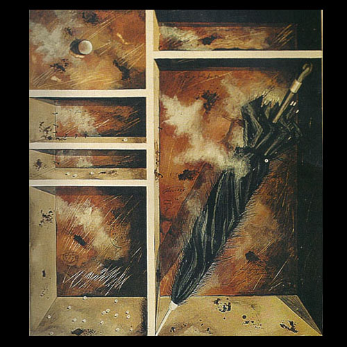 Pequeños personajes suben o bajan las gradas según su destino de salvación o condena: son hombres o Mujeres vestidos con ropas interiores (algunos de ellos lucen anteojos y arcaicas gorras de aviadores). Y en ese permanente transitar tropiezan a veces con clavos herrumbrados, objetos de peluche, estrellas de cerámica. Pero ellos parecen impasibles ante tales obstáculos y avanzan hacia la gloria o las tinieblas con calma. Al fin y al cabo, las condiciones que reinan en una meta u otra no deben ser demasiado diferentes a las del extraño camino que conduce a ellas.