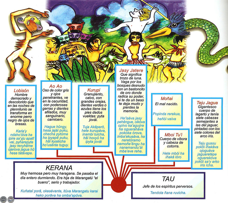 Teju Jagua, Mbói Tu’i, Moñái, Jasy Jatere, Kurupi, Ao Ao y Luisõ; Tau ha kerana ndive oñombyaty upe ñemendarã