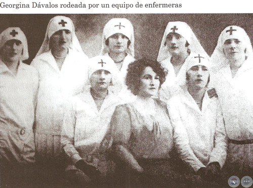 Georgina Dávalos rodeada por un equipo de enfremeras