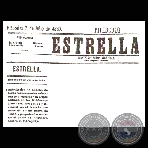 En Piribebuy, convertida en tercera sede de la Capital de la República, apareció el 24 de febrero de 1869 el N° 1 del periódico BISEMANAL "ESTRELLA", impreso en la Imprenta Nacional y el último el miércoles 14 de julio del mismo año, con un total de 41 números.