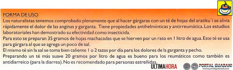 El aratikuʼi no tiene frutas grandes como su hermano mayor, pero sus hojas nos proporcionan un remedio económico y natural para luchar contra el hayʼo rasy, o dolor de garganta, como también para tratar la angina de garganta o amigdalitis.