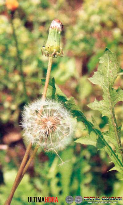 El diente de león (Taraxacum officínale) es una hierba medicinal con raíz gruesa, carnosa, que al cortar segrega una especie de leche blanca. Tiene el tallo corto y del extremo superior brotan las hojas variadas, algunas con bordes dentados o enteros y otras divididas en segmentos profundos, que llegan a la vena principal. En el extremo brotan las flores, que son de color amarillo.
