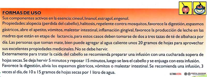 En Italia es la base del pesto genovés. Tiene efectos intestinales y su consumo periódico mejora el humor.