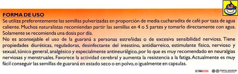 El arbusto guarana (Paullinia cupana) es una planta originaria de la Amazonia, perteneciente a la familia de las Sapindaceas. Se lo encuentra en forma silvestre en el Brasil, Colombia y Venezuela. En nuestro país ya tenemos cultivos individuales de esta planta con significativo poder energizante y antioxidante. Su nombre Paullinia fue bautizado por Carlos Linneo en honor al médico y botánico alemán, Simón Paulli. Las frutas de este arbusto contienen una importante cantidad de cafeína o guaranína y teina, como así otros estimulantes y vitaminas A, B, y E. Esa propiedad estimulante que contiene es utilizada actualmente para la fabricación de refrescos, polvos, barras comestibles y jarabes.