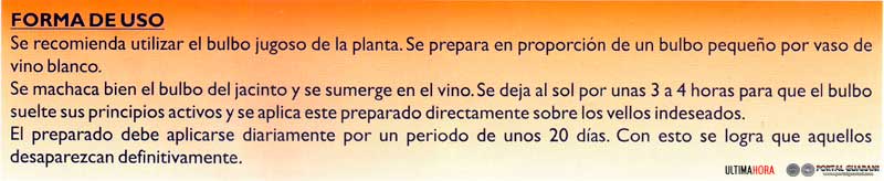 Se utiliza desde tiempos antiguos como un depilador natural y especialmente para detener el crecimiento del pelo en lugares no deseados, como el caso de los bigotes femeninos, pelos en la barbilla, entrepierna u otros lugares.