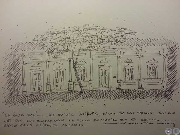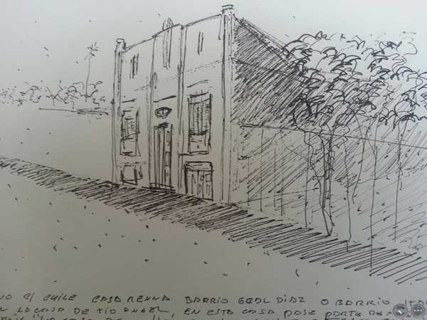 Chile y Primera in situ, cuando estaba dibujando la casa frente a esta, la duena Juanita Rossi