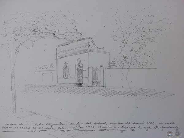 Edif. Victoria (Corbellani) Panteon de los Héroes (Ravizza). Dibujo in situ el 15 de agosto de 2013.