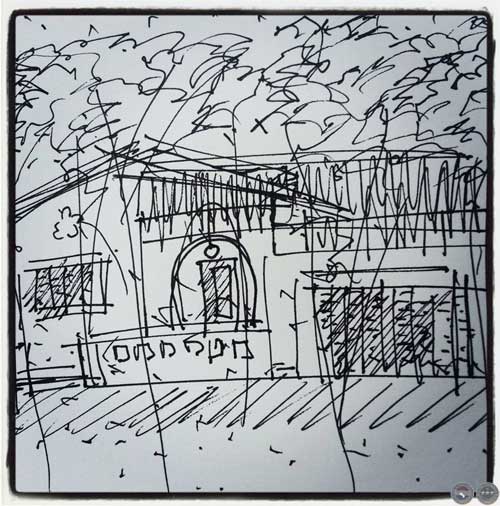 Más adelante fué la casa de Ezio y Mamilin... Dibujo a tinta in situ. As, 2013.