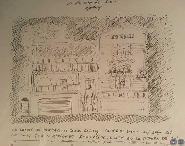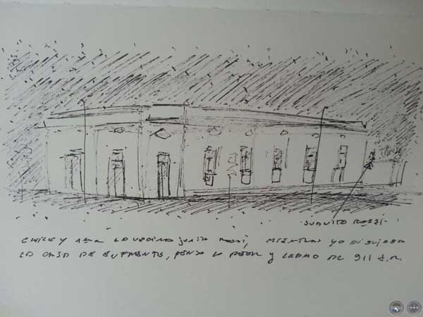 en Corrientes 1022." Dibujo a tinta in situ.