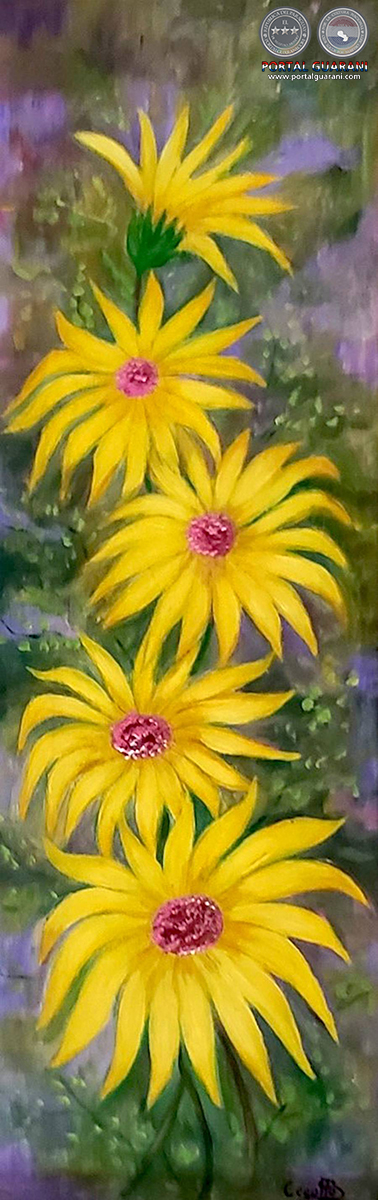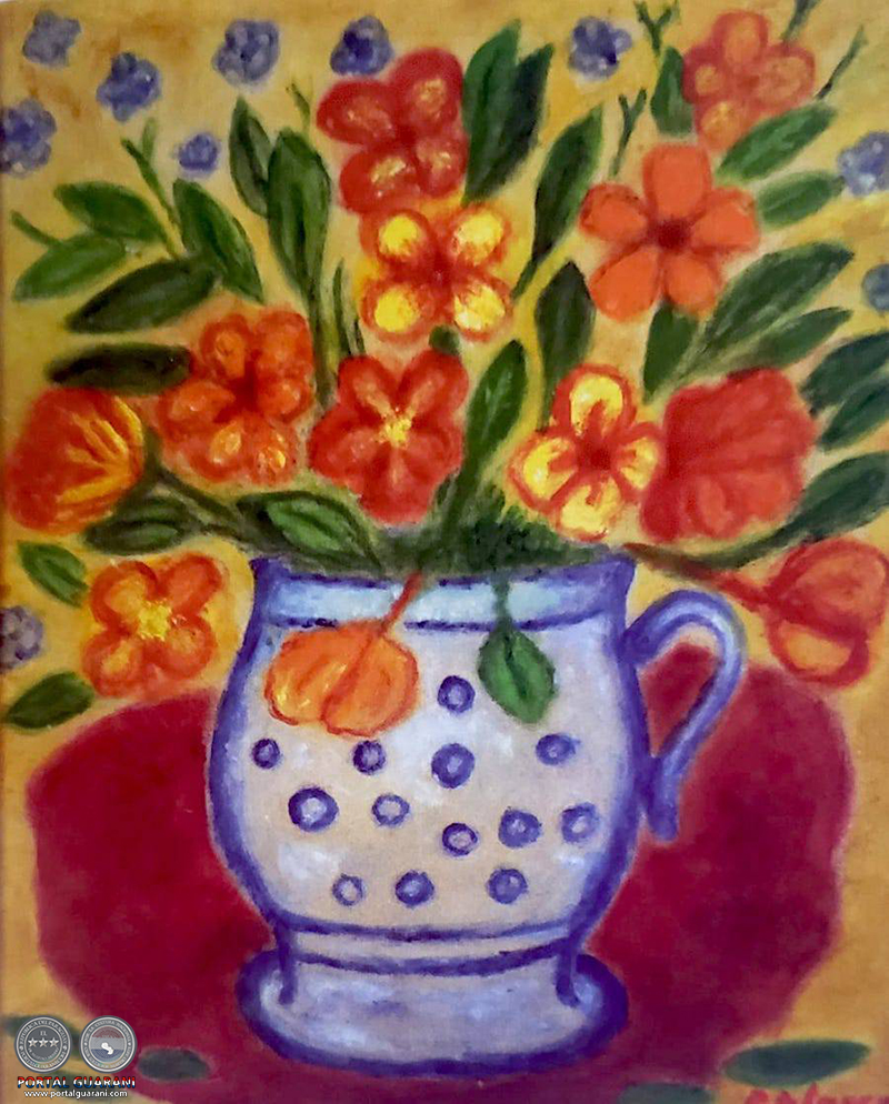 Siguiendo este camino de las flores al que hoy nos convoca la primavera, podemos ver el ingenuo mundo del pintor Pedro di Lascio, quien empezó a pintar ya a avanzada edad por prescripción médica, siendo luego uno de los artistas más expresivos de su época, mostrándonos su mundo de pequeñas casitas urbanas con sus flores. O el potente mundo interior que transmite a través de sus piezas florales la laureada artista Edith Jiménez, vecina de este pintor en el centro de Asunción.