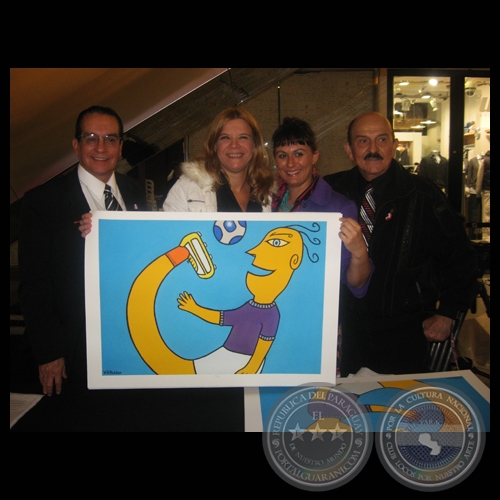 Foto derecha (11 de Mayo 2010): William Riquelme, yo (Virginia Rojas Holden), Dr. Osvaldo Real Torres (critico de arte) y la RRPP del Cavendish Square. LANZAMIENTO OFICIAL DE LA EXPOSICION INTERNACIONAL FINE ART 2010 del mundial de Sudafrica. Estuvieron presente:Virginia Rojas Holden y William Riquelme (por Paraguay), Alejandro Mondria (artista mejicano), un artista sudafricano (el nombre no me acuerdo), Dr. Osvaldo Real Torres, gente VIP de Capetown, Medios y fans del futbol.