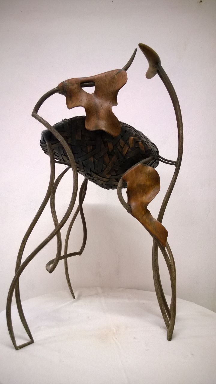 La escultura Sinergía Orgánica nos transporta a un espacio donde lo natural y lo industrial se entrelazan en un diálogo visual profundo. Las formas curvas y fluidas, talladas en madera, evocan la naturaleza en su estado más puro, mientras que las líneas metálicas sugieren la intervención humana, creando una armonía entre lo orgánico y lo artificial.