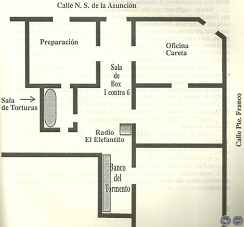 Fui llevado enseguida de vuelta a la Jefatura de Policía, donde al entrar noté que allí también estaban de festejo, con whisky y otras bebidas alcohólicas dispersas en todas partes, cantidad de colillas y tazas de café. Ante este antro de prepotentes y cobardes reunidos en son de festejo, pensé en mi esposa y mis hijos, como los hijos de los que estaban allí, que seguramente en su inocencia dirían: "Mi papá, pobre está trabajando", sin saber que ellos se dedicaban a torturar inocentes como ellos. Por ello y todos los inocentes violentados recé una protesta a Dios por todos aquellos de todos los tiempos. Estos pensamientos me pasaron vertiginosamente mientras observaba a los allí reunidos, que paso a describir.