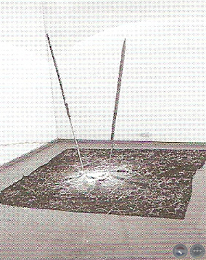 MARITÉ ZALDÍVAR trabaja en la intersección difícil que plantea en el Paraguay el cruce de itinerarios culturales diferentes. Plantea, así, una de las cuestiones claves del arte contemporáneo: el tema de lo otro; en su caso, el de la presencia de las culturas indígenas y rurales cuyos imaginarios aparecen a menudo trenzados con los urbanos en la resonancia de figuras o vocablos compartidos. Marité trata el tema del mito no sólo como lo hace la antropología clásica, que lo imagina como un sistema coherente de representaciones y cosmovisiones, sino como lo trabaja Barthes: los mitos contemporáneos corresponden también a sistemas de ficción -ideologizados las más de las veces- que sirven para inventar explicaciones fundacionales. Por eso, las narraciones oficialistas que esencializan las figuras de "Patria" y "Ser Nacional" y las vuelven términos abstractos y abusivos, también deben ser expuestas como mitos, aunque no tengan la fuerza de la ficción levantada desde las prácticas populares. Ni su poesía. En esta obra Marité despliega una manta confeccionada según las pautas chaqueñas del complejo tradicional del caraguatá, la reviste con leves y tenaces abrojos del kapi'i ätï, pasto cuyas espinas viajeras, empujadas por el antojo de los vientos, recorren distancias largas y se posan sobre cuerpos diversos que quedan inscritos por sus aguijones ásperos. Dos lanzas ayoreo de madera de quebracho atraviesan la manta e incrustan sus puntas de hierro en el suelo.