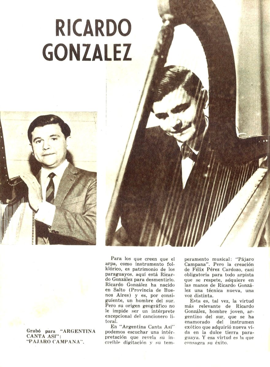 Además de incluir en el Disco 4 una versión de “Pájaro Campana” que había arreglado y popularizado Félix Pérez Cardozo , el Suplemento de Revista Folklore le dedica esta nota al artista.