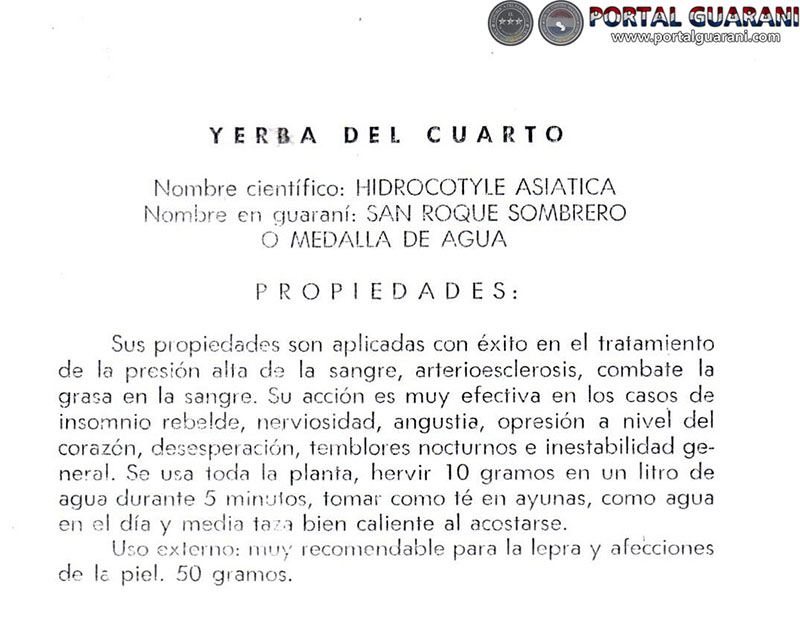 Nombre en Guaraní: SAN ROQUE SOMBRERO o MEDALLA DE AGUA