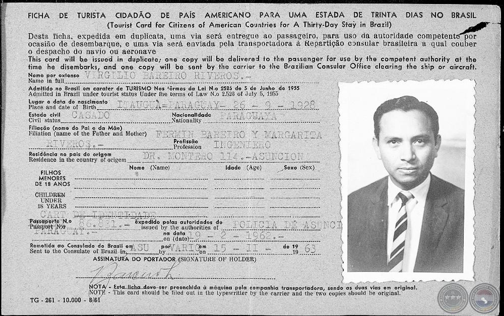 Fuente: MIS MEMORIAS - MENTIRAS Y VERDADES DE LA DICTADURA STRONISTA. Por VIRGILIO BAREIRO RIVEROS. Dibujo de tapa: CARLOS COLOMBINO. Diseño de tapa: SONIA MOURA ESCOBAR © Editorial ARANDURÃ - ISBN: 978-99967-42-20-0. Asunción – Paraguay, Agosto 2014