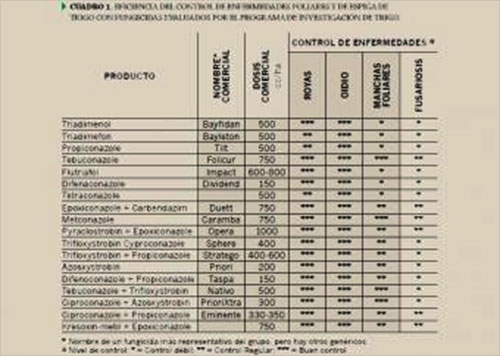 En el Cuadro 1 se presentan diversos fungicidas que han sido evaluados a través de los años por el Programa de Investigación de Trigo (PIT).