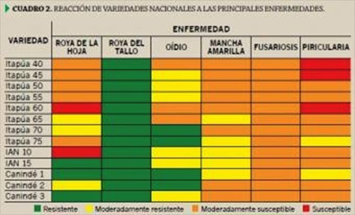 En este ciclo del cultivo 2012, las condiciones son muy favorables para el desarrollo de enfermedades foliares y de espiga. El mes de junio se ha presentado con alta humedad, días nublados y temperaturas mayores a 20 ºC, por lo que se considera que la protección química con fungicidas será relevante para el éxito de la cosecha.