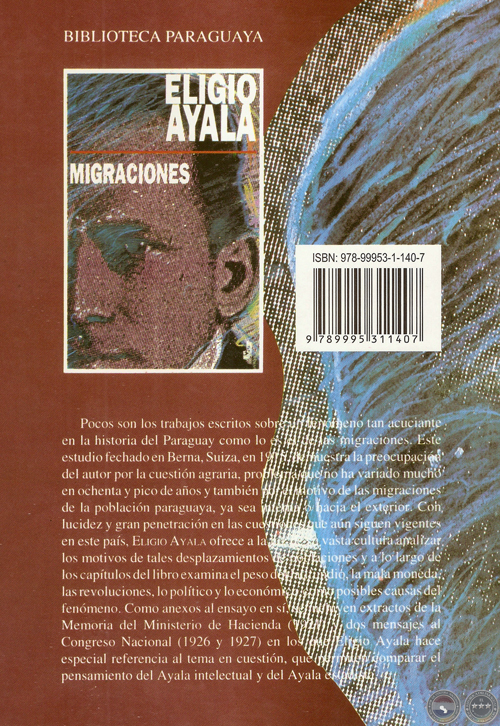 Cuando el doctor ELIGIO AYALA escribió sus MIGRACIONES, durante su estada en Suiza, en 1915, no se imaginaría que adelantaba sus puntos de vista en una especialización que hoy es materia de preferente estudio en una de las ramas de la Sociología moderna. Esta faceta de Eligio Ayala, valdría la pena estudiarla entre los que se dedican a las ciencias sociales, para ubicar a nuestro ilustre compatriota entre los "pioneros" de esta nueva y apasionante materia de altos estudios en América. (No olvidemos que Eligio Ayala dejó también numerosos trabajos inéditos, y que en sus mensajes al Parlamento, hay material abundante no solamente sobre temas sociológicos, sino además relacionados con la Economía y las Finanzas, el desarrollo cultural, la defensa de nuestro territorio, etc. Con sus Migraciones únicamente - trabajo escrito cincuenta y tantos años atrás- no se puede, aunque muchas de sus apreciaciones siguen siendo de actualidad, completar un juicio sobre la capacidad intelectual del que gobernando dentro del libre juego de las normas democráticas, demostró sus excepcionales condiciones de estadista).