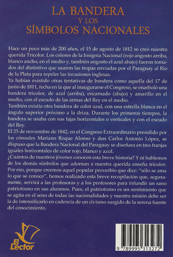 Este símbolo de la Patria, vinculado a su historia, es una insignia en colores que simboliza también autoridad y dominio. Las banderas que vemos desfilar por las calles, llevadas por niños, mujeres, o que admiramos en los mástiles, no son simples pedazos de telas. Cada uno de nosotros estamos representados en sus colores y escudos, y con el mismo empeño y heroísmo con que la defendieron nuestros mayores, debemos amarla, respetarla y defenderla para que así a su vez nuestros hijos, el futuro de nuestra nación, sepan igualmente idolatrarla para grandeza de la Patria Paraguaya.