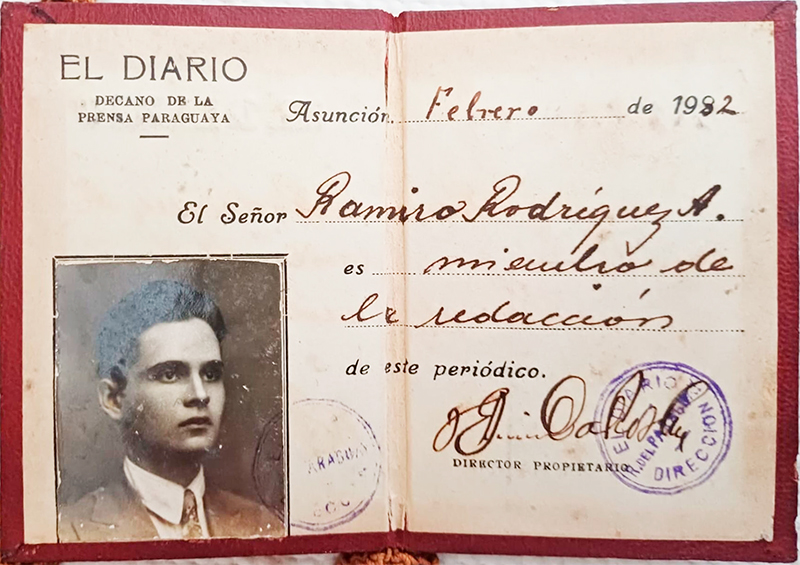 Carnet profesional de Ramiro Rodríguez Alcalá cuando trabajaba en El Diario, en 1932.