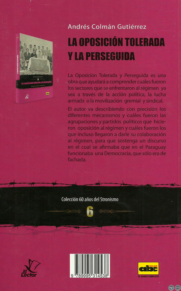 Este libro es un aporte a la Colección 60 años del Stronismo en el que se puede comprender en forma clara y sintética el rol que cumplió la oposición durante las diferentes etapas del régimen.