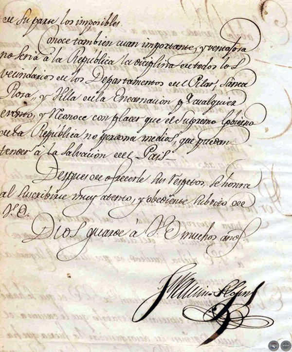 Documento de puño y letra, con la firma de Francisco Solano López.