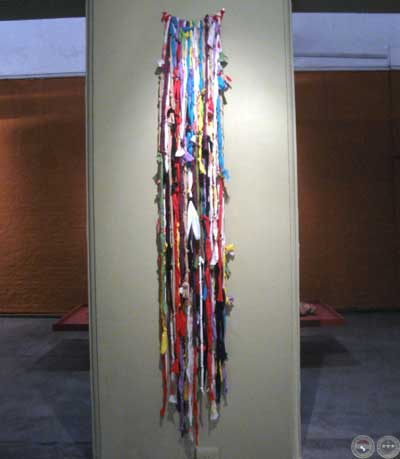 Joaquín Sánchez, Banderas, 2010, Banderas paraguaya y boliviana deshilachadas y ovilladas, colección del artista
