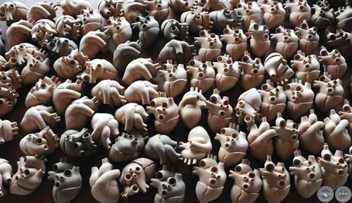 Centenar de piezas con forma de corazón, talladas en maderas de desmonte del Chaco.