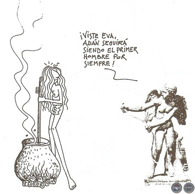 Adán, a su vez, después de haber disfrutado de este matrimonio con esta mujercita ideal, jamás hubiera imaginado que sería engañado y que juntos sufrirían tan doloroso exilio, el que hasta hoy padecemos, agravado con las penas de nosotras, las féminas que seguimos sujetas a los deseos de dominación de adánica procedencia. También estamos las otras, aquéllas que pagamos no sólo la condena propia de nuestro sexo: la de parir con dolor, sino también la del Primer Hombre: la de ganar el pan con el sudor de la frente, siendo así sujetas de ambas maldiciones divinas impuestas por la curiosidad de Eva.