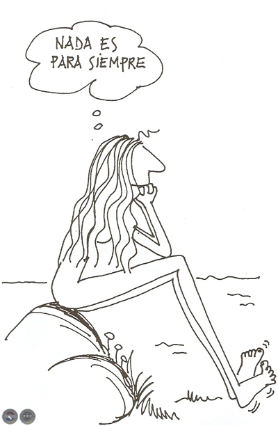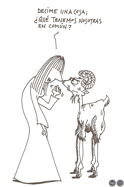 El asalto de esos simpáticos integrantes de la cadena de la naturaleza no la amilanaron y siguió el sendero del humor en la certeza de que era una iluminada. Proveída de algunos lápices de papel y otros de colores dibujó, dibuja y dibujará. Interpretó, interpreta e interpretará las situaciones que cotidianamente padecemos las mujeres.