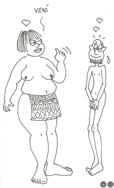 "Las partes sexuales de los hombres no son nunca más que de un tamaño mediocre y las de las mujeres son, por el contrario, muy anchas y sus grandes labios inflamados excesivamente, sus nalgas son igualmente muy grandes..." presume Félix de Azara, cronista de estas nuestras latitudes.