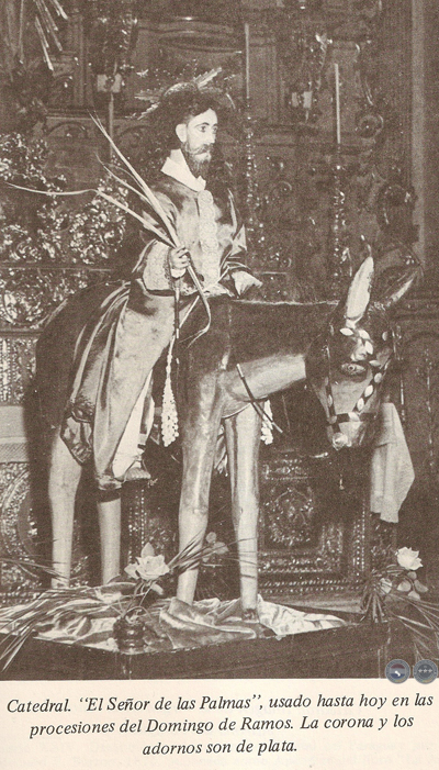 EL SEÑOR DE LAS PALMAS: Del siglo pasado. Usado aún hoy en las procesiones del Domingo de Ramos. La corona y otros adornos son de plata, Pertenece a la Catedral.