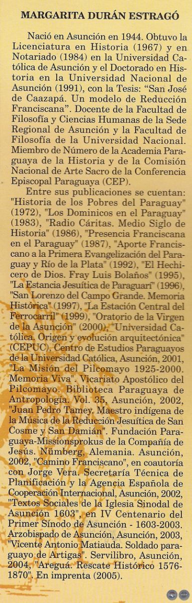 - Margarita DURÁN ESTRAGÓ, Presencia Franciscana en el Paraguay 1538-1824. Biblioteca de Estudios Paraguayos, Universidad Católica. Vol. XIX, Asunción, 1987.