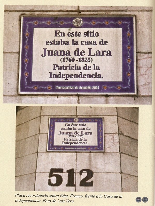 Antes de promulgarse la Ley 3495 del año 2008 de formación de la Comisión Nacional Bicentenario ya tenía el concepto de que debía reivindicarse como prócer a Doña Juana María de Lara, esto nació cuando realizaba visitas a la Casa de la Independencia acompañada de mis alumnos universitarios paraguayos o extranjeros; me entristecía la ingratitud de que no hubiera merecido recordatorio.