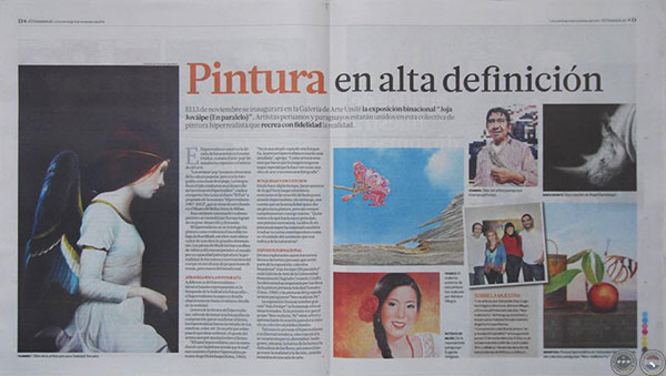 El día jueves 13 de noviembre se inaugura la exposición grupal titulada “Joja jováipe (En Paralelo)” en la galería del Centro Cultural UNIFE de la Universidad Femenina del Sagrado Corazón, Lima, Perú. Para la muestra fueron especialmente invitados por los artistas peruanos Angel Surichaqui Ramos y Soledad Tomairo Gabriel (Integrantes de la Sociedad Figurativa de ese país), los artistas Sebastián Díaz, Eugenia Ortigoza, Emmanuel Fretes y Adriana Villagra quienes conforman el grupo “Neo-Realistas.py”.