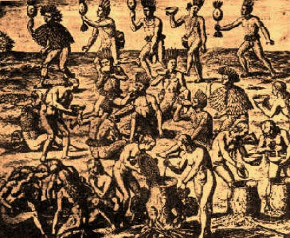 Una tribu guaraní. Grabado europeo del siglo XVIII.