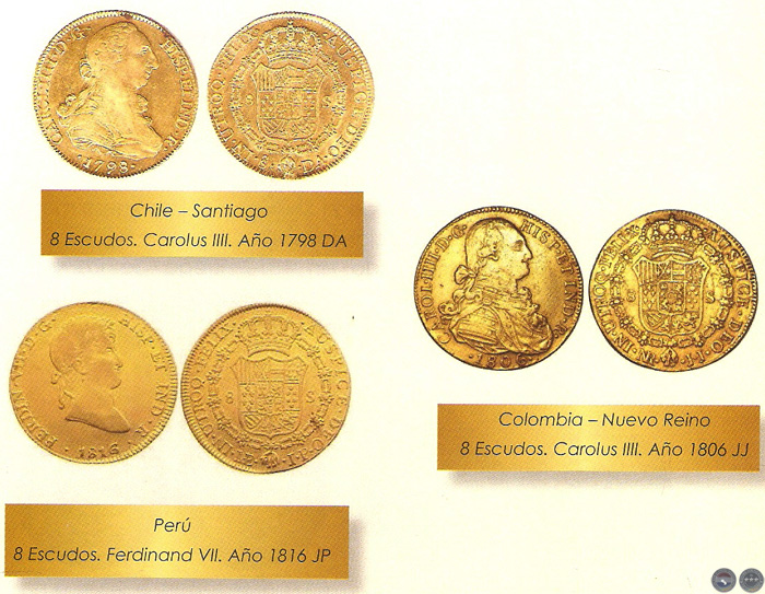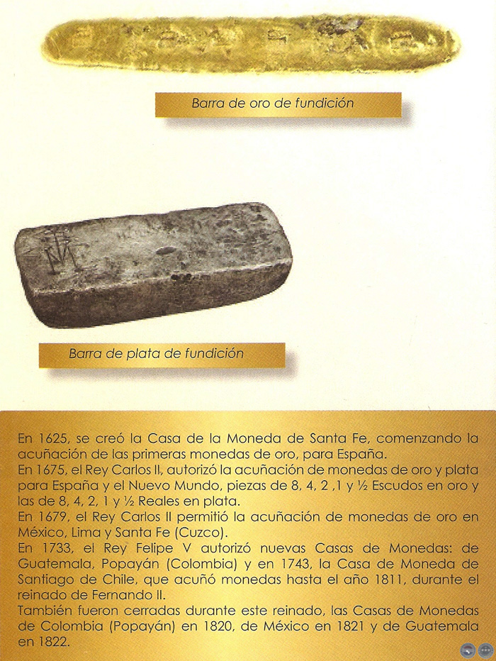 Durante este período, solamente eran acuñadas monedas de plata en el Nuevo Mundo. El oro era enviado a España en forma de lingotes pesados y marcados.