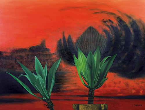 S.E. El desarrollo de una obra pictórica es un camino de búsqueda, en el cual hay aciertos y desaciertos. En la anterior exposición, en el 2006, presenté trabajos que fueron el resultado de un desafío que me había propuesto: el de investigar aspectos del paisaje en Paraguay. Esto desde nuevos enfoques técnicos, como los colores más luminosos y tintas mas diluidas. Y fue un desafío, por varias razones. Antes no había hecho paisaje (salvo esporádicamente) También porque en gran medida se trataba de un tema tabú, un genero maltratado, tanto técnica como conceptualmente, aquí, sobre todo, pero también en otros países.